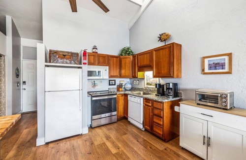 Tucked away on the top floor of Cedar Cove Condos, Lighthouse Collector is a vaulted studio unit with a lighthouse theme. This charming retreat is ideal for two guests and welcomes your furry companions. Whether you're relaxing indoors or exploring the island, Lighthouse Collector offers a peaceful escape with a touch of coastal nostalgia.