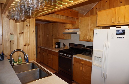 The Home: This spacious, modern, open plan vacation home offers 4 bedrooms (including the loft space) and 4 baths. The window walls of the living and dining areas bring the spectacular view right into your living space. The living area includes a full featured home theater system with 65" OLED TV, Cable TV service, fast Internet/WiFi service and a several hundred title DVD & Blu-ray library. The kitchen boasts custom cabinetry with roll-out lower cabinets for easy access to pots and pans. The cabinets are fully stocked with dishware and utensils to indulge your every cooking whim. The main suite has a California King hybrid mattress with a tow sink private bath, Jacuzzi tub, seated shower, and washer dryer. The lower level living area bedroom has its own private bath , kitchenette, and separate living dining area. The private dock, 2 canoes, and 2 kayaks offer excellent swimming and boating access to Long Pond. 2 private moorings that will moor up to a 20' power boat are included.