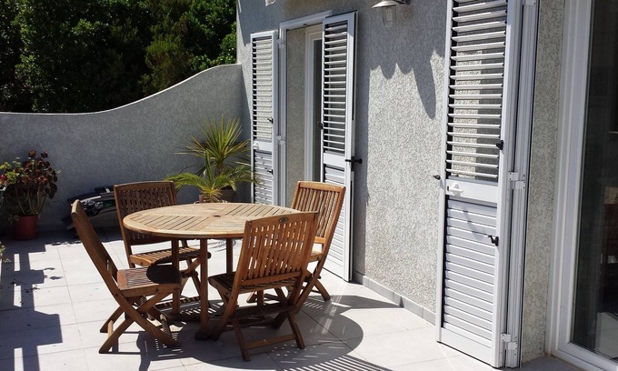 Comfortable apartment of 70m2 on the first floor of a villa with terraces and fenced, wooded garden.
