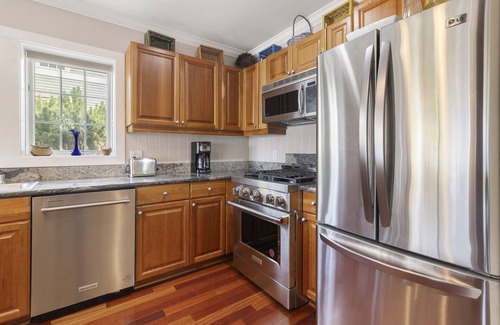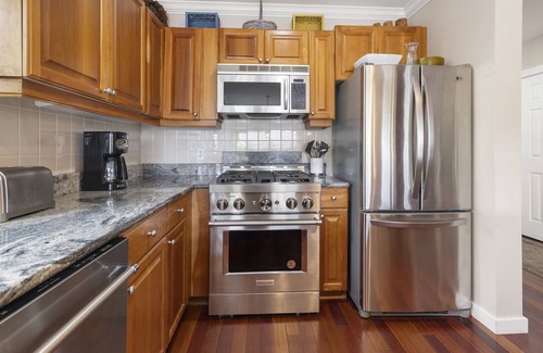 - Fully equipped kitchen with a gas stove, oven, dishwasher, microwave, coffee maker, toaster, and more