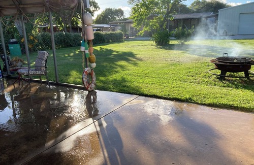 Come visit Port O'connor, Texas and enjoy the best offshore and bay fishing on the Gulf Coast. Quiet streets for bike riding or walking to Kingfisher Beach. Charter a fishing trip or bring your own boat or rent a kayak or bring your own. Great local restaurants and shops when you're ready for some time off the water. Come stay in this roomy, fully furnished and RECENTLY REMODELED, home! One king sized bed, one queen size bed and two twin XL beds. All with new mattresses! Two newly remodeled full baths and full kitchen. Tastefully decorated nothing fancy but comfortable. Central air and heat for your comfort. Large back yard with large covered patio that has a gas and charcoal grill as well as washer boards and cornhole to entertain yourselves while cooking and relaxing after a day on the water. Room for boat parking. Water hookups available for boat washdown. Centrally located in Port O'Connor close to Kingfisher Beach and lighted fishing pier, restaurants, night life and shopping. Also minutes to clarks boat ramp and the Fishing Center ramps and Froggies boat ramps. Great for family reunions. Located in a quiet neighborhood, make my home your fishing headquarters!