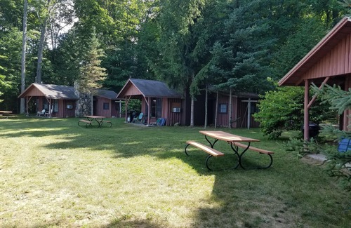 All cabins have access to a private common fire pit, with available wood, lawn space, private beach, beach toys, life jackets, swim platform, kayaks, and paddle boats.