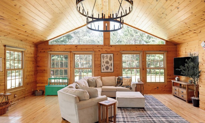 Best-rates for the Central Lake house starts from $240 per night with includes Parking, Pet Friendly, Fireplace/Heating, Entertainment, Laundry, Air Conditioner, TV, Sports/Activities, Bedding/Linens, Guest Services, Internet, Balcony/Terrace, Barbecue/Outdoor Cooking, Kitchen, Security/Safety, Wellness Facilities, Child Friendly StayAndPlay offers fully equipped golf villas, golf hotels, golf resorts, luxury golf cabins, and exclusive golf retreats, making it easier than ever to find your perfect golf escape — ideal for families, peaceful getaways, or pet-friendly retreats with the whole crew.