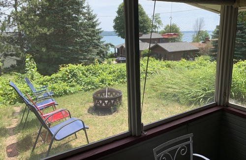 Large screened-in porch with lake views. Newer windows with screens. Fire pit. Buoy in place to tie up a boat or flotation device.