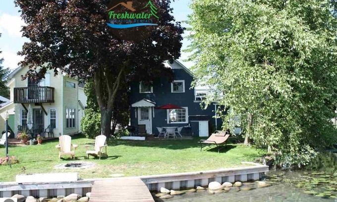 This is cozy cottage located right on Torch River. This home is unique because from the front door you will see the popular all-sports Torch Lake and out the backdoor you gaze upon Torch River. The public beach access is directly across the street from the property, which has a small sand bar. In addition, with a private dock, this home allows you to use bring your own water vessel or you are free to use the kayak which is included in your stay. There is a waterway passage from the river to the lake and vise versa. When taking your boat (up to 30') to and from, please watch for stumps in the water. You may also want to observe other boats on how they get through because the waterway is not clearly marked.