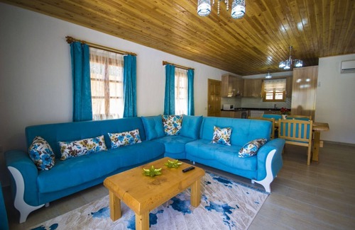 This comfortable villa is located in the heart of the peaceful verdant village of Islamlar, some 10 km from the popular resort town of Kalkan. With a predominant use of traditional timber construction, it has a pool which is totally unseen from outwith the villa making it an ideal choice for those guests looking for a high degree of privacy, be it for religious or other reasons. Another advantageous feature of this villa is it proximity to local restaurants and grocers shops, ideal for guests not wishing to rent a car.