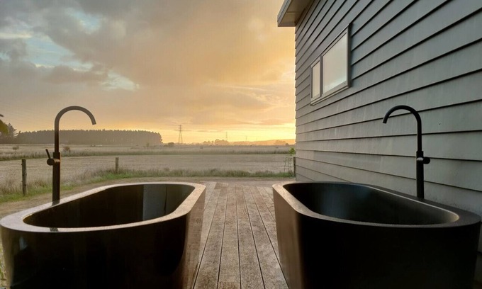 Situated conveniently between Featherston (5 mins) Greytown (8mins) and Martinborough (14 mins) you can take your pick of the best Wairarapa has to offer. Whether you're enjoying a coffee in the morning sun or cozying up with the log fire burning the Totara on Moroa is a fantastic place to base yourself. Enjoy Wairarapa's dark sky reserve the right way with the outdoor baths. Because the house is on a rainwater supply with a single tank, be aware of how much water you use. There is enough hot water for two baths because the house is heated by a hot water cylinder, but eventually it can run out until more can be heated!