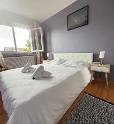 Tout le monde sous le meme toit - 10 voyageurs - 25 mn europapark is located in Benfeld, just 4.9 miles from Würth Museum and 17 miles from Strasburg History Museum. This vacation home offers free private parking, a mini-market, and free Wifi. Jardin botanique de l'Université de Strasbourg is 18 miles from the vacation home and Strasbourg Cathedral is 18 miles away. The vacation home is composed of 1 separate bedroom, a fully equipped kitchen, and 2 bathrooms. A flat-screen TV is offered. The accommodation is non-smoking. Guests can relax in the garden at the property. La Petite France is 17 miles from the vacation home, while St. Paul's Church is 17 miles from the property. Clermont-Ferrand Auvergne Airport is 74 miles away.