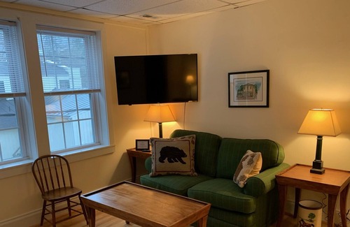 Located at 2831 Main Street in downtown Hot Springs offering convenient access to The Homestead, Snead's Tavern, micropub BACOVA BEER and many other downtown locations, all within walking distance. The entry for this walk up apartment is shared with LCDO Restaurant and Jackson River Cafe. Tower View Apartment looks out toward the historic Homestead Tower. It includes two bedrooms, one with a queen and the other with two double beds that share a full bathroom, dining area, and a full kitchen with washer & dryer. There is a 55" flat screen RokuTV in the living room and excellent WiFi throughout.