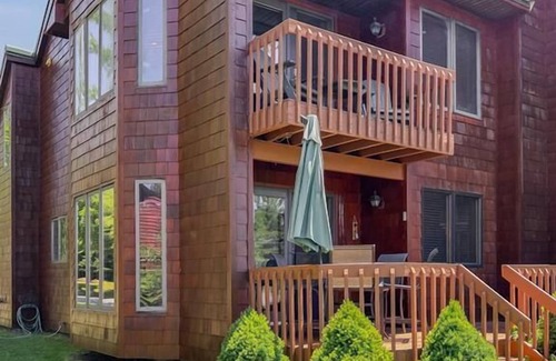 This Luxury Townhome on 4th Lake in the Adirondack Mountains, features 3 bedrooms, 3 full bathrooms, a fully-equipped kitchen, Great-room with a wood-burning fireplace and upper & lower decks. The 28 acre, private community hosts an indoor heated pool & spa open, year-round, 1300ft sand beach, 3 tennis courts, a volley-ball court, lakefront gazebo on the point with panoramic views and direct access to snowmobiling on 4th Lake and Trail #5. The town of Inlet, NY is a 0.5 mile walk, on a paved sidewalk from our property. There you will find a beautiful park, grocery store, hardware store, gift shops, library, ice cream stand and much more! This is the perfect Family Resort.