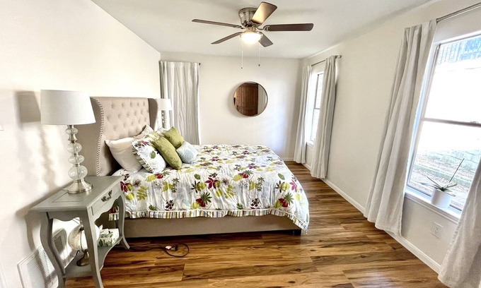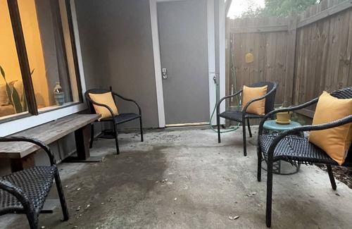 Enjoy a stylish experience at this centrally-located place. Not only will you feel like home with a fully stocked kitchen, 2 comfortable queen Purple brand mattresses, and 2 patios to hang out and soak up some sun, but you will also be within close proximity to all of the hot areas in Austin! 5 minute drive to south Congress, 8 minute drive to downtown, and 12 minute drive to Barton creek pool.