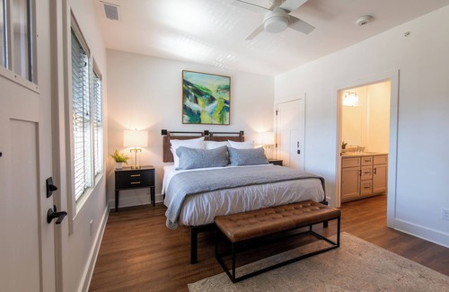 Relax and Recharge: Experience restful nights on our comfortable Kingsdown king mattresses. Each unit features beautifully decorated interiors with a contemporary touch, ensuring a relaxing and stylish retreat. Our units also include a sleeper sofa with built-in inflatable air mattress to allow guests to customize their desired firmness.