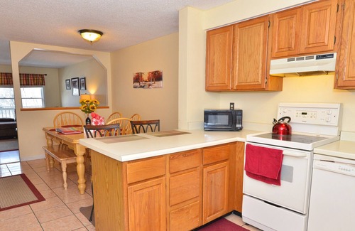 This charming and pet friendly Saco Pines townhouse unit is located in Center Conway, NH on the Saco River and offers sleeping for up to 6 people. This well equipped and comfortable property will be the perfect place for your next vacation! The main level of this home features an open concept design including kitchen with bar seating, dining area with room for 6 and living room with gas stove, flat screen TV and seasonal view of the Saco River. Off the living room is a lovely deck to enjoy the fresh New Hampshire air! The main level also includes a half bath. The second level offers 2 spacious bedrooms. The first bedroom has a queen bed and large closet, the second bedroom offers a king size bed and view of the river. Also on the second level is a full bathroom. The lower level walkout has a TV area with futon and two twin size bunk beds. Also in the lower level is the washer and dryer.