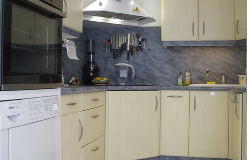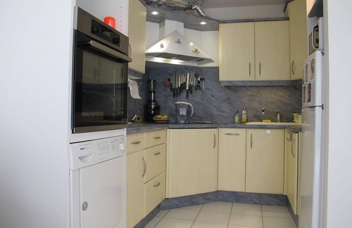 Cuisine toute équipée avec tout ce qu'il faut (plaque, four, four micro-onde, cafetière, bouilloire, grille-pain, lave-vaisselle, lave-linge, sèche-linge..).