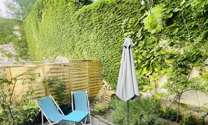 A stone's throw from rue Mouffetard, in the Butte aux Cailles district, the ground floor apartment on two courtyards has a small garden for eating outside.