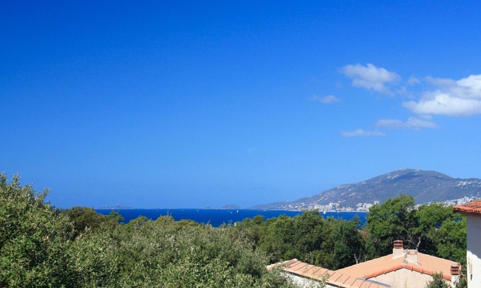 Appartement 2 pièces climatisé avec terrasse face à la baie d'Ajaccio et les iles sanguinaires sans vis à vis, très calme.