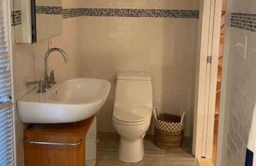 There are two outside hot/cold water showers; one enclosed with a toilet and vanity and the other is open.