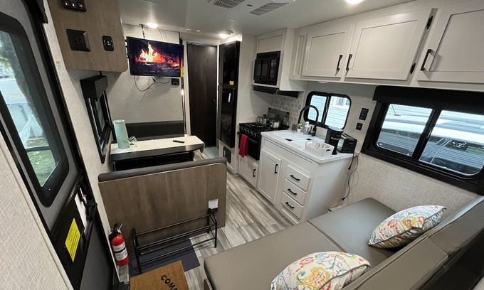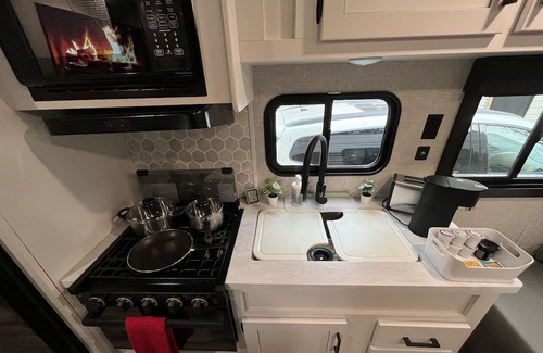 Brand new RV located in Payson, Utah where you will enjoy nature in the city. Included in the stay is a picnic area, grill, grassy area, and fire pit to enjoy at night. Screen and projector available upon request for movie night after dark. Perfect for a weekend getaway, staycation, time together with family and loved ones.