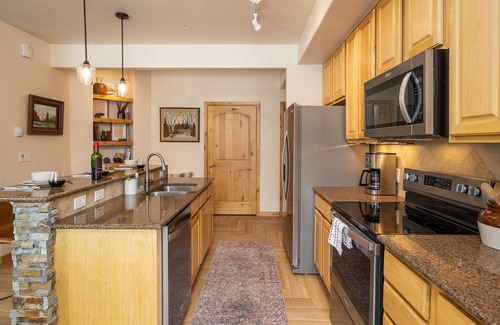 Trailhead Lodges 712 is a premier condominium property located in Downtown Winter Park, Colorado. With high-end amenities, and professionally decorated you'll feel at home after a day of skiing, hiking or walking home from one the many summer events at the Rendezvous Event Center. This is a pet friendly one-bedroom condo and features a large primary suite with a King bed and 42” smart tv!