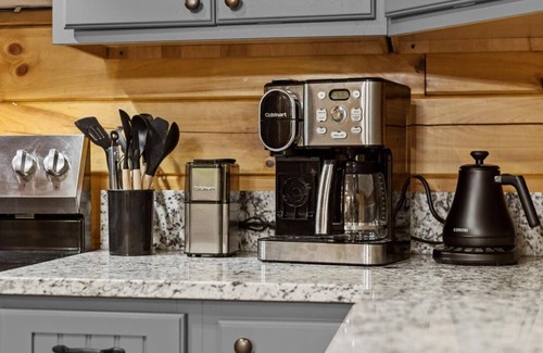 The kitchen is equipped with coffee maker, coffee grinder, tea kettle, many small to large pans and pots, cooking sheets and pans, mixing bowels, many cooking utensils, grill utensils, toaster, mixer, blender, crock pot, electric griddle, first aid kit, fire extinguisher