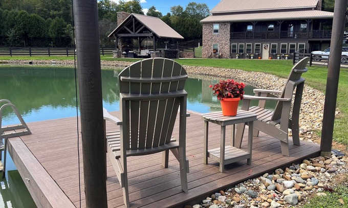 Located in the heart of beautiful Mohican Country, Trails End Retreat is the perfect getaway. The 5-acre property was newly renovated in 2025. We've added a beautiful outdoor patio with a wood burning fireplace, pond dock, and hot tub. Bring your furry family members, including horses. The entire area around the pond is safely fenced for dogs. There is a half acre pasture with run-in shelter for horses to stay on property. Saddle up and ride, or throw on your hiking gear, and explore some of the most beautiful trails in the Mohican State Forest. You can access the Blue Trail less than 3/4 of a mile away. Trails End Retreat also offers guests a stocked fishing pond, corn hole, pizza oven, Weber grill, and Blackstone. Inside you will find TWO well equipped kitchens that makes meal prepping for multiple families very convenient. Sleeping arrangements include- 2 king bedrooms, 1 queen bedroom, 1 bedroom with two twin beds, and a sleeper sofa. There are 2 full bathrooms and 1 half bath inside. There is another full bathroom accessible in the barn area (which is great when guests include RV campers on property). There are 4 available RV hookups that can be arranged through the owner after booking. We also have a bunkhouse, with 2 twin beds, that is included with the rental (linens for the bunkhouse are not included). Trails End Retreat offers beautiful views, peace, tranquility, and is less than 5 miles from all of the canoe livery action.