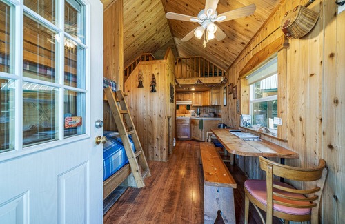 The Trail’s End cabin features a bunk sleeping arrangement with a double-bed below and a twin above. There is a small loft with two single futon cushions as well. Bathroom has a shower and toilet. All basic cookware and utensils are provided along with a coffee maker. *Roasted coffee available at The Coffee Boss. ***NO ANIMALS permitted at The Trail’s End Cabin including Emotional Support Animals due to HEALTH and SAFETY HAZARDS from Severe allergies held by our cleaning staff. No exceptions.