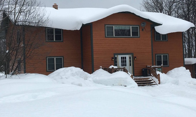 True ski in/ski out lodging. Our building is right on the "Just Cuz" trail at Black River Basin Ski Resort. Ski right out the back doors. After a long day on the slopes enjoy some relaxation in the shared rec room which includes a hot tub, sauna, card table and air hockey table.