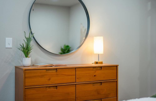 Welcome to this wonderful, newly remodeled 2-bedroom, 1-bathroom home in scenic Bentonville, perfectly designed for a longer stay with modern comforts and conveniences. Step out the front door and within a minute, you're on the Handcut Hollow Mountain Bike Trails. Both Downtown and 8th St Market are just a short drive away. The living room features a comfortable sectional sofa, ideal for enjoying entertainment on the smart TV, which includes Hulu, Netflix, Disney+, cable, and HBO Max through.