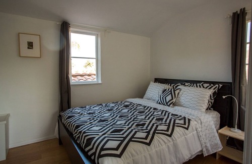 Escape to tranquility in this light-filled, newly remodeled one-bedroom guesthouse apartment on a grand old half-acre Spanish estate. Centrally located in Pasadena with easy freeway access, enter another world as you step under the estate’s redwood, palm, and magnolia trees. Take the stairs to the apartment under a hundred-year-old olive tree. Enjoy the view from the sundeck, and dream away some hours on a hammock in the bamboo grove next to a fish pond, while listening to birds sing.