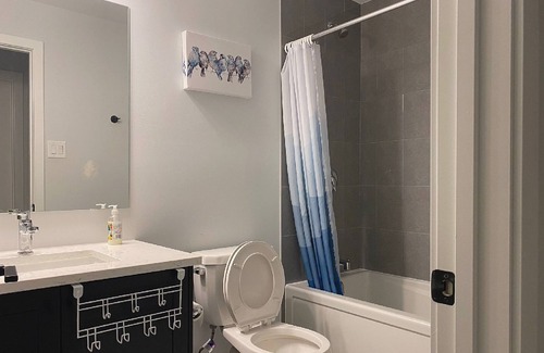 While you're here, you can enjoy all the comforts of home and more, including a full-sized refrigerator/freezer and an oven, as well as a dishwasher and free WiFi. Other amenities include laundry facilities, towels, an electric kettle, and kitchenware and utensils.