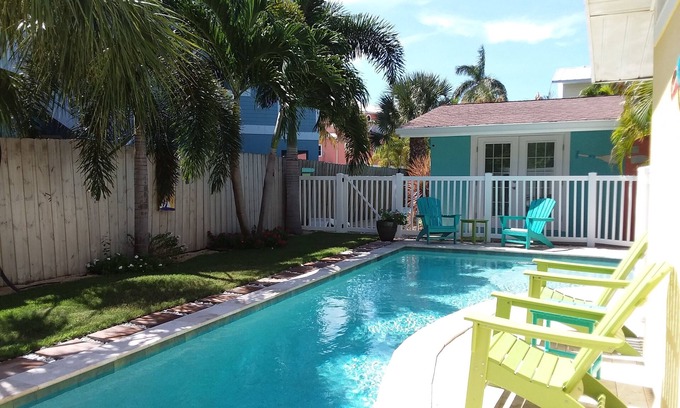 Our vacation rentals are located 2 short blocks from one of the most beautiful gulf beaches in the US and are within walking distance to food markets, pharmacies, and restaurants. The FREE trolley stop is just 1/2 a block away, and the trolley runs from the Anna Maria City Pier at the north end of the island to Coquina Beach at the south end. It runs every 20 minutes from 6:00 am to 10:30 pm. You really don't even need a car while on the island. The 4 units are Serenity (#1), Tranquility (#2), Sanctuary (#3) and Harmony (#4) and feature a heated swimming pool, courtyard, two gas grills, laundry room, and outdoor showers with hot water. The pool has a small children's area, and also a 28' swim lane. We stop by almost daily to maintain the grounds and make sure your needs are met.
