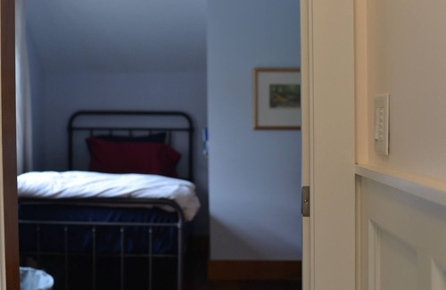 An 1860s farmhouse with 1970s addition, recently renovated to include a chef's kitchen with brick oven, large-screen smart TV, radiant heating in 4 bathrooms and other areas, and central A/C, with thermostats in every room. We have 1 fireplace, a brick oven, and a Weber grill, a front porch and a back deck. 4 of the bathrooms have walk-in showers.