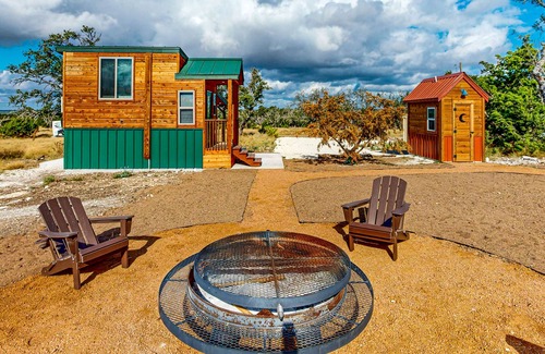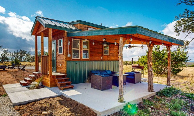 For your peace of mind, the cabin is equipped with essential safety features including flashlights, a fire extinguisher, carbon monoxide detector, first aid kit, smoke detector, and surveillance camera. Relax, unwind, and immerse yourself in the tranquility of the Texas Hill Country at this unique and well-appointed studio cabin in Harper. Book your stay today for a memorable getaway in the heart of Texas!