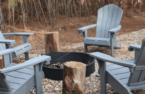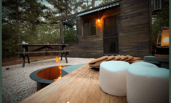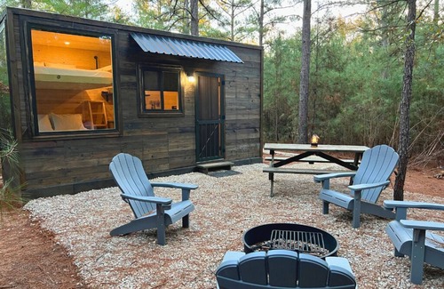 You will love spending time in one of our charming Tranquil Bunk Cabins. Each of our Tranquil Cabins is tucked into its private site in the piney woods. The cozy queen bunk bed, ensuite bathroom, and kitchenette will add to your tranquil experience. Indulge in a delightful outdoor dining experience at the traditional picnic table, and cozy up to the warm fire in a comfortable Adirondack chair.