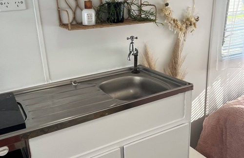 Stay comfortably in Waihi Beach at this camper ground in our cute cabin which consists of a caravan, annex and closed in porch. The cozy space features 1 queen bed, 2 twin beds, and a sofa that can sleep 2 more, perfect for a pleasant getaway. Since it is located in a campground you can enjoy all the amenities such as WiFi, playground, laundry room, kitchen facilities, and a fitness room. The bathroom is only 3 metres away and comes equipped with a hairdryer for your convenience. Feel free to reach out to us during your stay - we're happy to suggest local spots to check out.