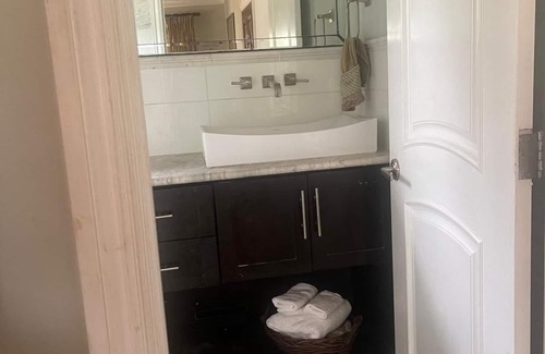 Escape to our serene guest suite, ideal for up to four guests with two double beds. Located in Coral Harbour, enjoy a short stroll to the beach. Amenities include two double beds, a full bathroom, mini fridge, microwave, tea/coffee machine and a cozy seating area. Just minutes from the airport. Whether you're exploring beaches or seeking relaxation, our suite is your perfect getaway. Book now for unforgettable memories!