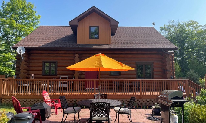 A peaceful setting for a log cabin set in the forest of pines and maples. Sleep in a bedroom with views of the forest and fields. Barbecue on the back patio with total privacy. Cosy up in the fall on the deck and watch the stars in the night sky. Tour the island and embrace all the fall colours of the forests. Manitoulin is a great place to hike, walk or bike a great variety of trails. Lake Wolsey is a short drive where you can fish from the causeway bridge or launch a boat. The cabin is like a home away from home, in a small community that welcomes visitors to the Island.