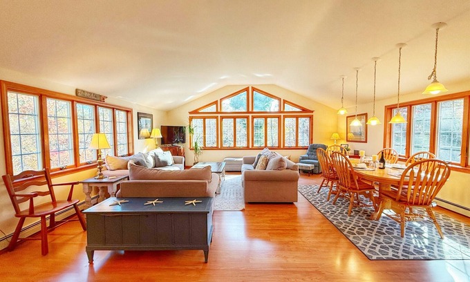 Immerse yourself in the charm of Cape Cod with this beautifully designed 1,700 sq. ft. home, where sunlight streams through every room and comfort meets effortless elegance. With three cozy bedrooms, three spacious bathrooms, and an expansive private deck leading to a lush backyard, this home is the perfect blend of style and relaxation. Unwind in the open-concept living spaces, cook a feast in the fully equipped kitchen, or enjoy dining alfresco under the Cape sky. Ideal for up to seven guests, including a wheelchair-accessible suite, this pet-friendly retreat is just moments away from Harwich Port, pristine beaches, scenic trails, and beloved local spots like Sundae School and The Port restaurant.