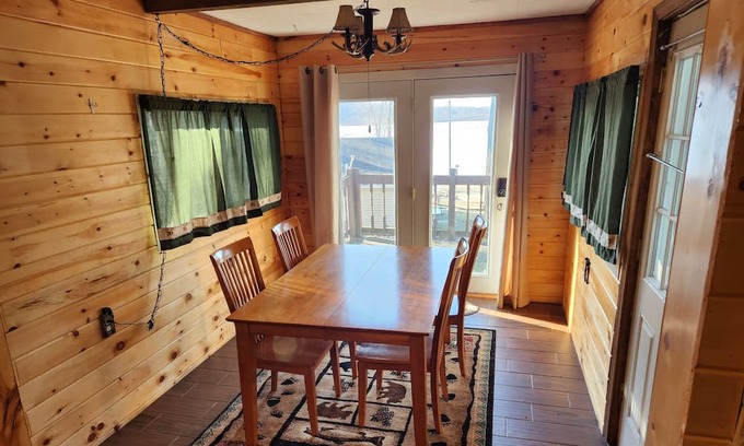 Step inside and immerse yourself in the inviting ambiance of knotty pine walls, creating a true cottage feel. The interior is a harmonious blend of rustic charm and modern comfort, with comfortable furnishings that encourage relaxation and a connection with nature.