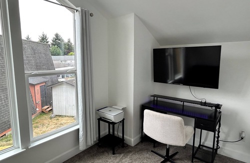 • Bedroom 3: Second floor – Office style room, Futon sleeper, desk for at-home work setup, TV, and small closet space.
