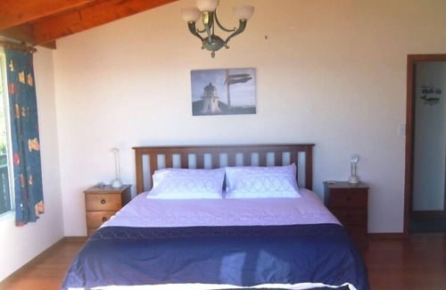 Tranquility Base is a spacious coastal home with easy indoor/outdoor flow and comfortable open-plan living spaces. Woodburner in the living area and 2 heaters. The new designer kitchen includes a dishwasher and is fully equipped for foodies! Three bedrooms - master and 2nd bedroom with ocean views and french doors onto the deck. The 3rd bedroom has french doors opening on the BBQ patio. The master bathroom has a claw foot bath, shower, vanity, and toilet. A second toilet is located off the laundry room. We use quality 100% cotton sheets.