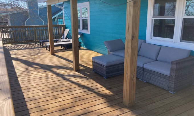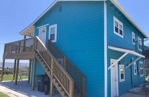 3 Bedroom/2 bathroom fully furnished coastal bay house able to accommodate 7 comfortably located on East Bayshore Dr. in Palacios, TX. All new stainless steel appliances, combo washer/dryer, and central air and heat. Closets in each bedroom with XL TV in living room. Designated sitting area in enlarged downstairs master suite suitable for working remotely. Relax on the enlarged deck, enjoy sunbathing or simply enjoy the breathtaking sunrises and sunsets. Extra couch upstairs and 2 sleeper chairs in the living room if you happen to have unexpected guests. Feel the cool bay breeze and watch coastal birds flying overhead.