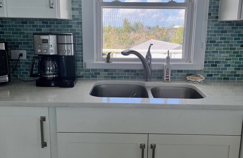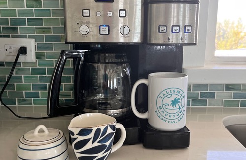 This beautiful beach home is newly-renovated (thank you to hurricane Dorian), with a custom kitchen and cozy seating area. If you enjoy relaxing at home in the air conditioning with gorgeous views this is the spot for you! Did we mention there’s an onsite hot tub! Talisman runs fully off of solar power but don’t worry there is a back up generator just for peace of mind.