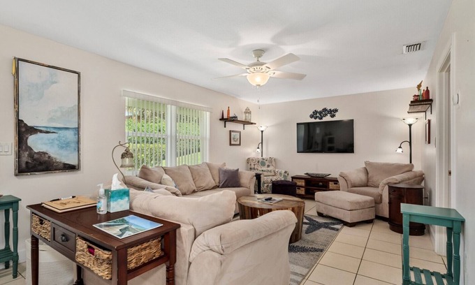 Located approximately halfway between Ocean Ave. in Melbourne Beach and Sebastian Inlet, (~4 miles south of the Melbourne Beach Publix), the Tranquility Starfish Suite is a completely remodeled and beautifully decorated one-bedroom apartment.