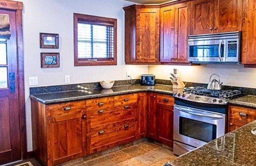 The kitchen is fully equipped with gourmet appliances, utensils and dishes - everything you need to create a great meal after an active day of skiing, golfing or hiking. Just outside our back door, overlooking the Valley Trail, is a private hot tub and gas-fired barbecue.