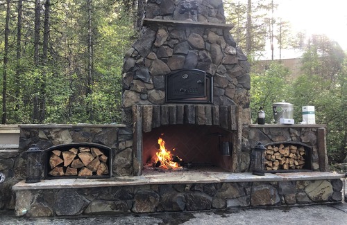 Included: Outdoor fire pit & propane BBQ grill. log Fireplace, WIFI, air conditioner, Alexa, Keurig coffee maker and coffee, puzzles, games, books.