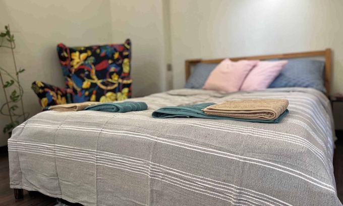 Welcome to our comfortable and fully equipped apartment, perfect for a short getaway or a longer stay. The living room offers everything you need for relaxation. A double sofa bed is the centerpiece. A coffee table and chest of drawers complete the space. The bedroom guarantees a good night's sleep thanks to its comfortable double bed. Guests have access to a spacious wardrobe, a bedside table, and a set of fresh linens. A functional desk with a chair is the perfect place for remote work. The kitchenette is equipped with all the necessary appliances for self-catering. You'll find a stove, oven, and a large refrigerator with a freezer. The bathroom features a modern shower, toilet, sink with mirror, and a practical cosmetics cabinet. A washer-dryer is extremely convenient. The apartment is pet-friendly and comes equipped with two beds, bowls, toys, a leash, and other accessories. Guests also have access to a shared balcony.