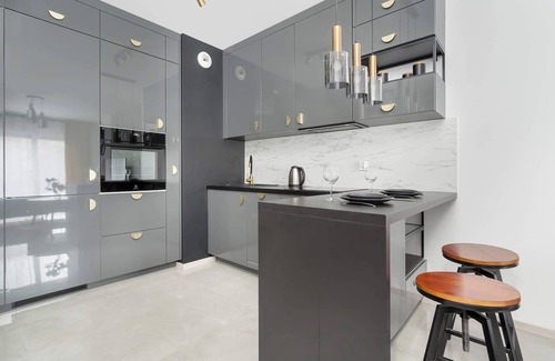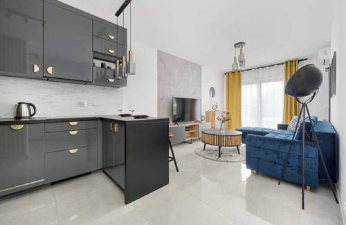 This spacious apartment is located on the second floor of the building and has been designed with the comfort of four people in mind. It is distinguished by an elegant, bright interior, furnished in a stylish way, combining modernity with comfort. In the living room there is a double sofa bed providing two sleeping places, while in the separate bedroom you can use a double double bed. The living space is air-conditioned, which ensures comfort in any weather. The kitchenette is fully equipped, so you can freely prepare meals. It includes, among others, an induction hob, oven and dishwasher. From the living room you can go out to the furnished balcony - a perfect place for morning coffee or evening relaxation. The bathroom is equipped with a shower, soft towels and a special set of free cosmetics. There is also a washing machine, which will certainly come in handy during longer stays. The entire apartment is covered by fast, wireless internet, which allows constant contact with the world. Additionally, you can use a flat-screen TV with SmartTV function. Pets are welcome. An additional convenience is the possibility of using a parking space in the underground garage.