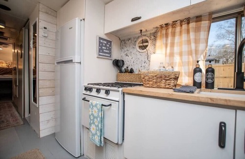 This Skoolie is located on a property with another Airbnb. They do share the same entrance in but have separate driveways and the Skoolie is fenced in separate and private from the house. If you’re looking for more space check out our other listing- Waco Bungalow for more space!