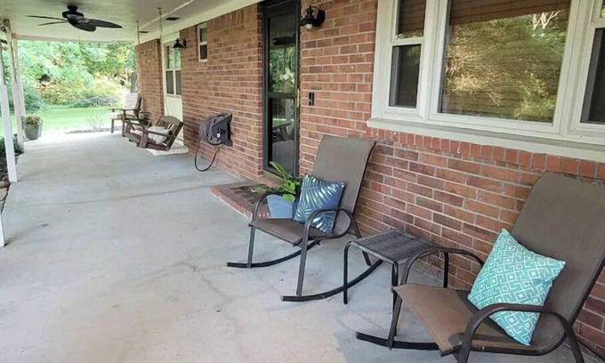 This quaint 1500 square foot house has an abundance of outdoor living with two attached porches, an over-sized yard, grill and card games/books. there's plenty of space to curl up and enjoy a book or access your favorite show on Netflix through one of the three TV's. A designated workspace is tucked away in the second bedroom with a scenic view of the backyard. The fully-stocked kitchen includes a coffee maker, hot water kettle, blender, pots/pans, and plenty of to-go cups to use for outside. The master suite has blackout curtains for those wanting a dark room to sleep in. Welcome snacks, water, and coffee are provided to all guests.